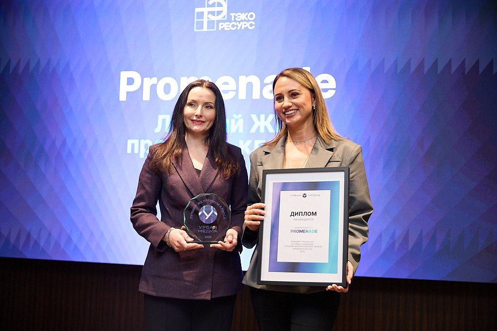 Promenade получил награду в номинации «Лучший жилой комплекс премиум-класса». Эксперты особенно отметили локацию. Расположение в историческом центре Казани на набережной озера Кабан — рядом метро «Площадь Тукая», Кремль, набережная, спортивные и торговые центры. Камерность сочетается с премиум-сервисом: бесплатный Wi-Fi во дворе и на парковке, ландшафтный дизайн с подсветкой, консьерж-сервис, подогрев пола у входа, переговорная и дизайнерская отделка от AR ARCHITECTS.